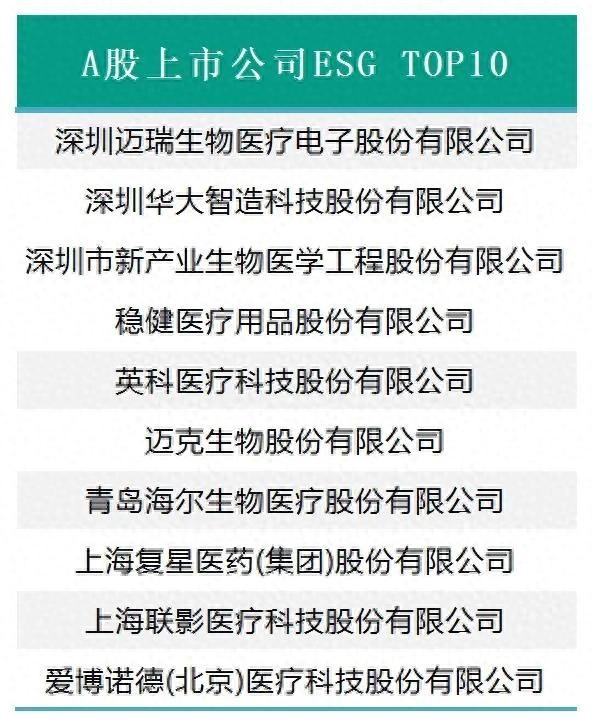 中國醫療器械A股上市公司ESG TOP10來源:器械之家,未經授權不得轉載,且24小時后方可轉載醫療器械行業緊密關乎國民健康福祉,肩負著沉甸甸的社會責任,踐行ESG可持續發展理念已成為不可阻擋的趨勢。過去一年,器械之家始終關注醫療器械行業的ESG發展動態,報道了眾多杰出案例。新年伊始,我們結合中國醫療器械行業協會ESG特別工作組的《2024